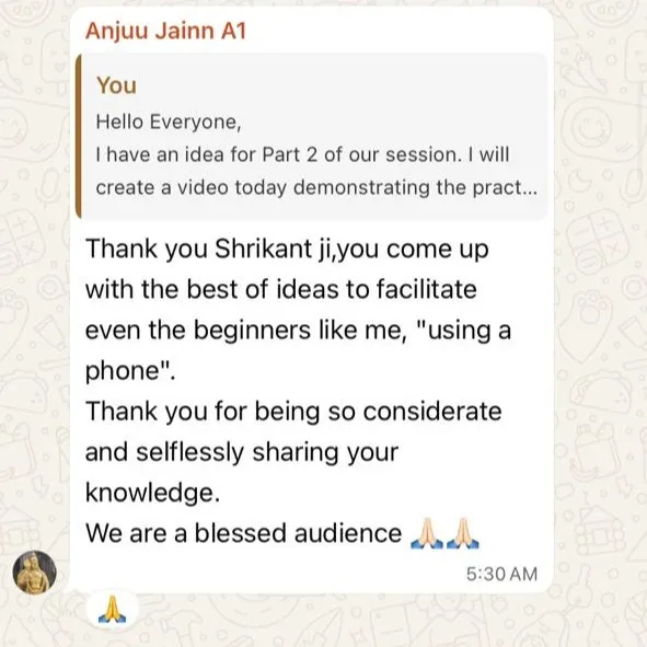 You’ll receive the Zoom link in the WhatsApp group a few hours before your session begins.